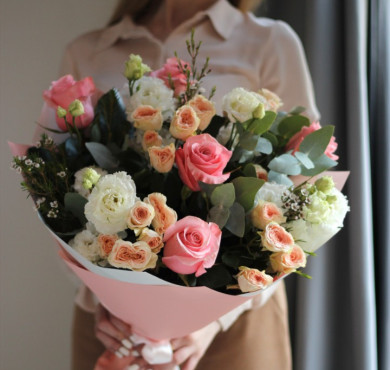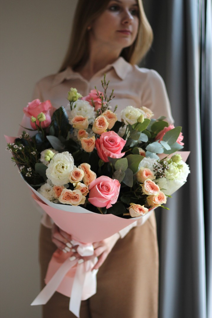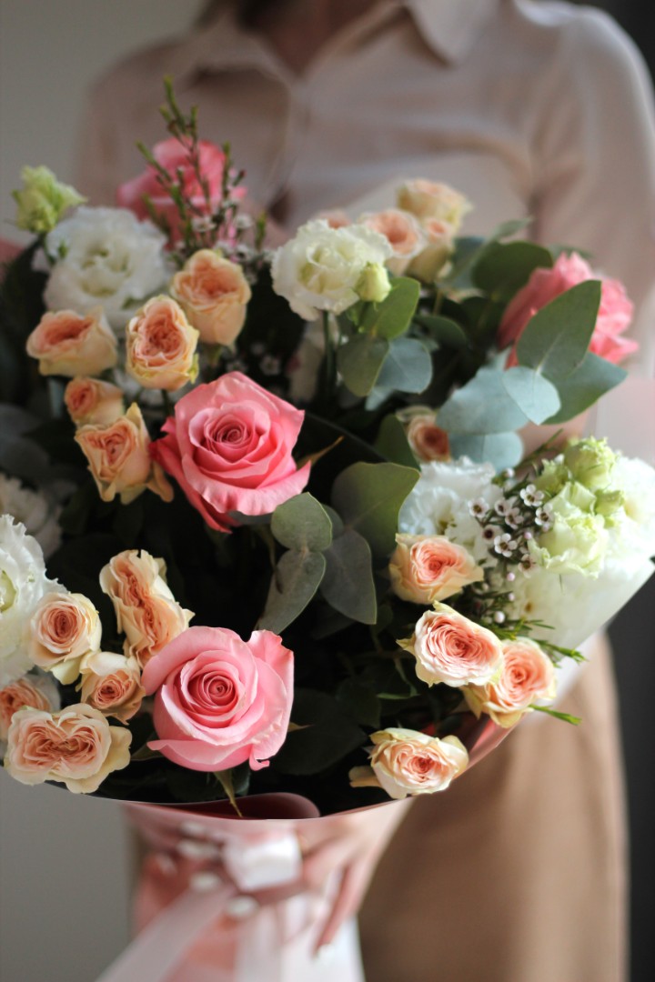 - - Розы,кустовые розы, эустома,хамелациум,эвкалипт