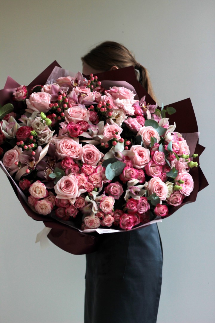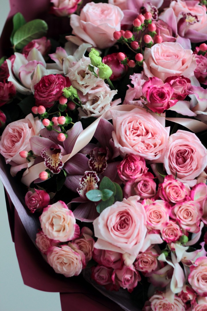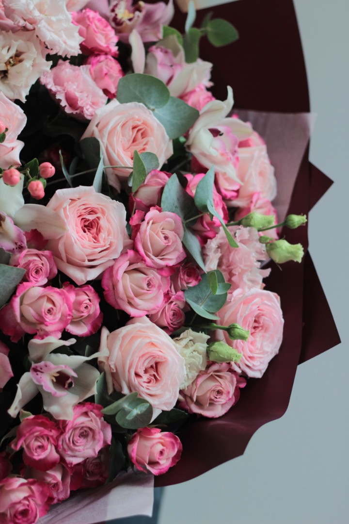 - - Пионовидные розы,кустовые розы,орхидеи,эвкалипт,эустома,гиперикум