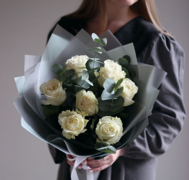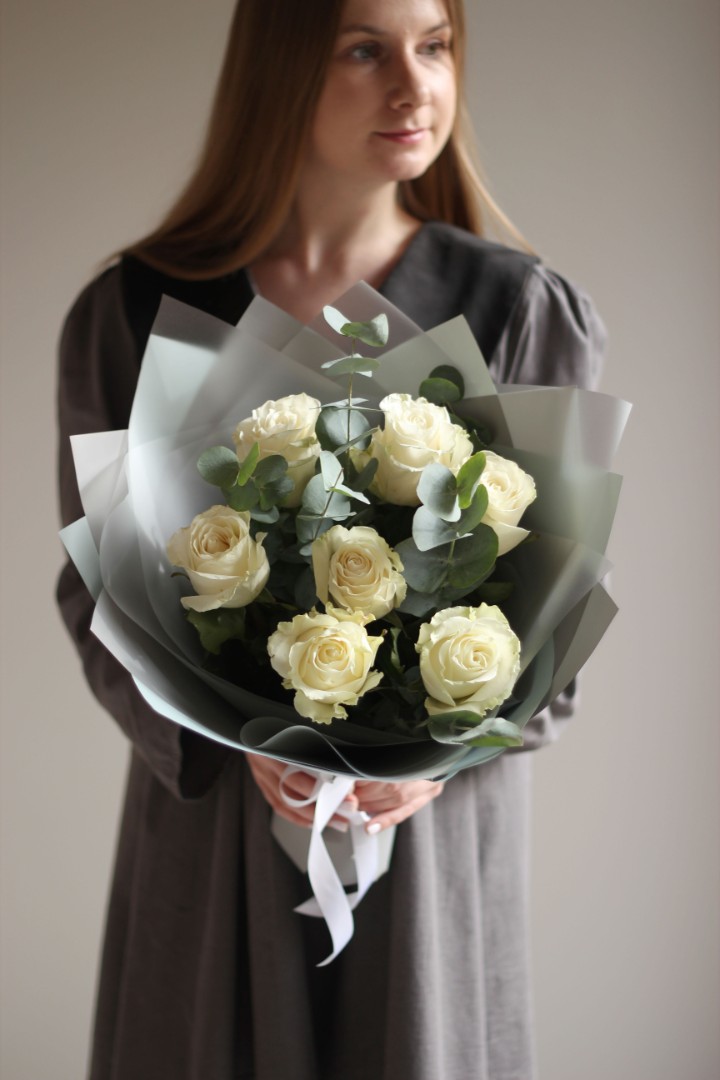 Букет из 7 роз с эвкалиптом