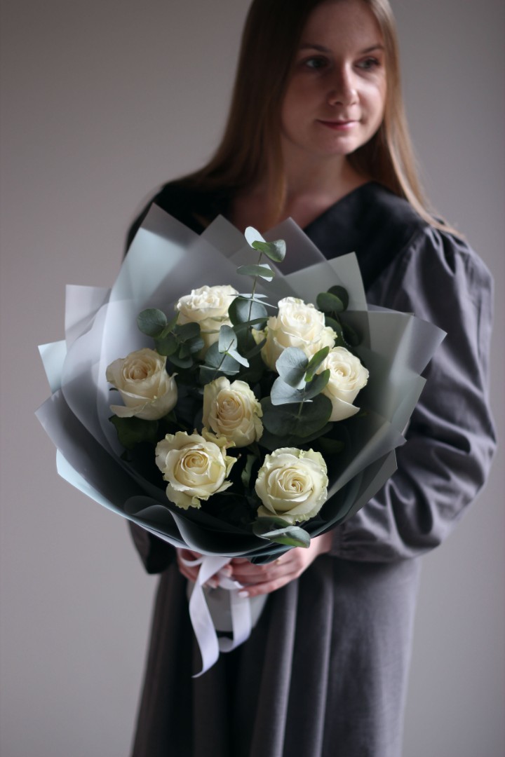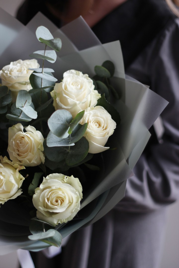 - - 7 роз,эвкалипт