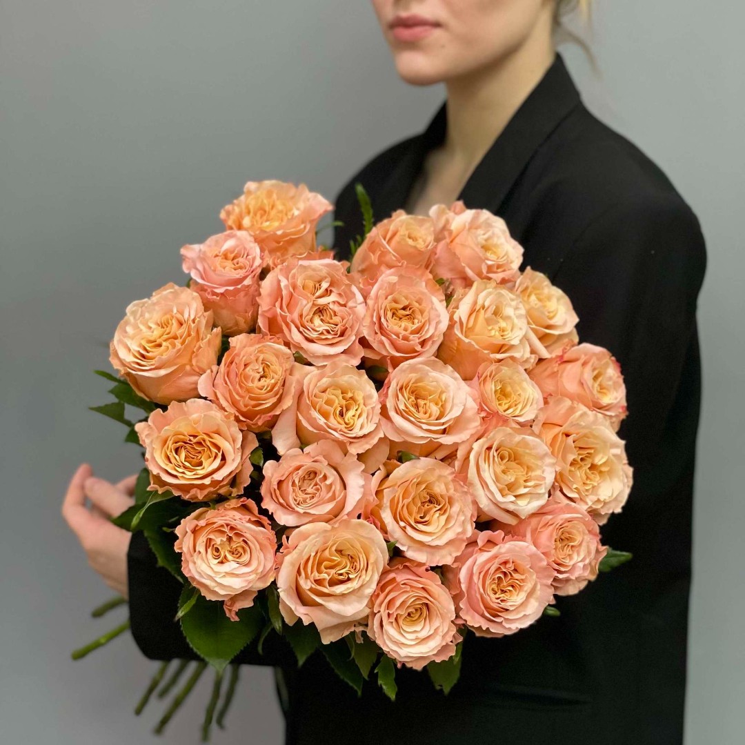 Букет из 25 пионовидных роз Кэнди лайт в упаковке