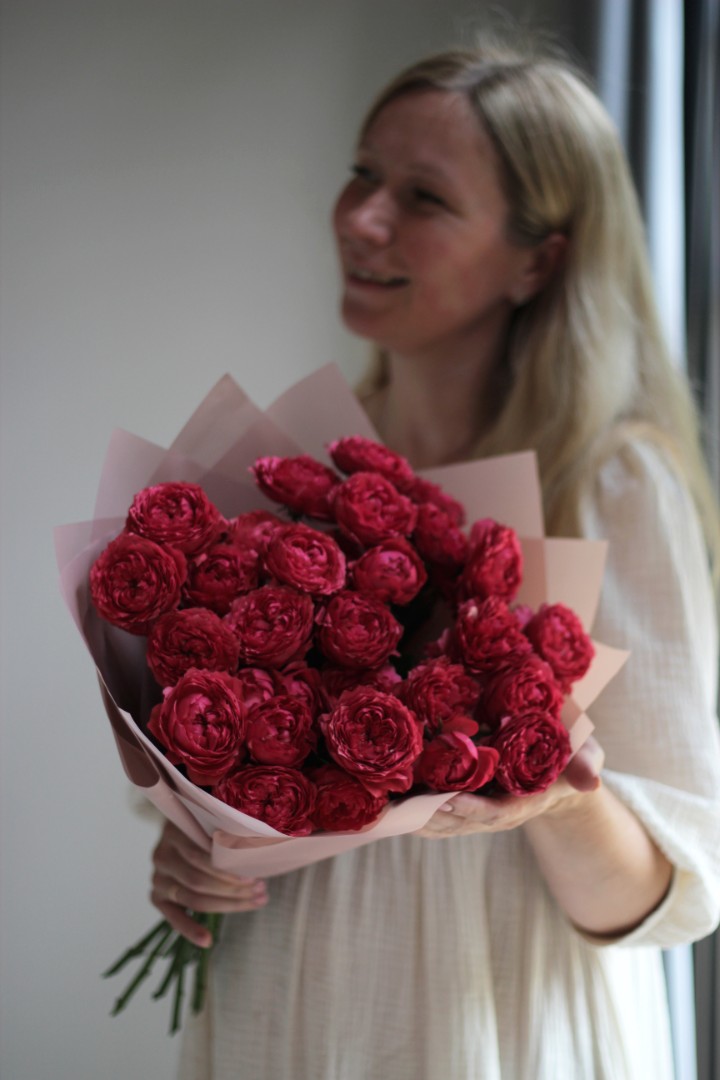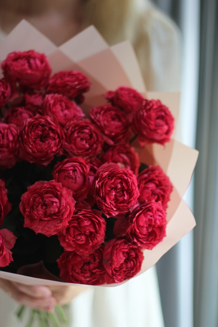 Букет из 19 кустовых роз Джульетта с эвкалиптом