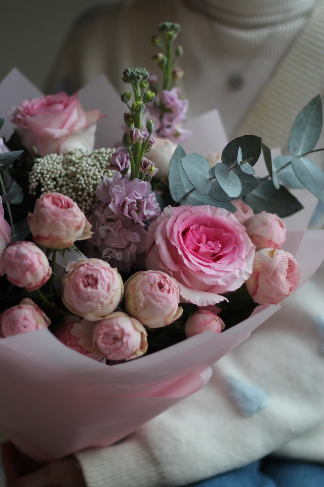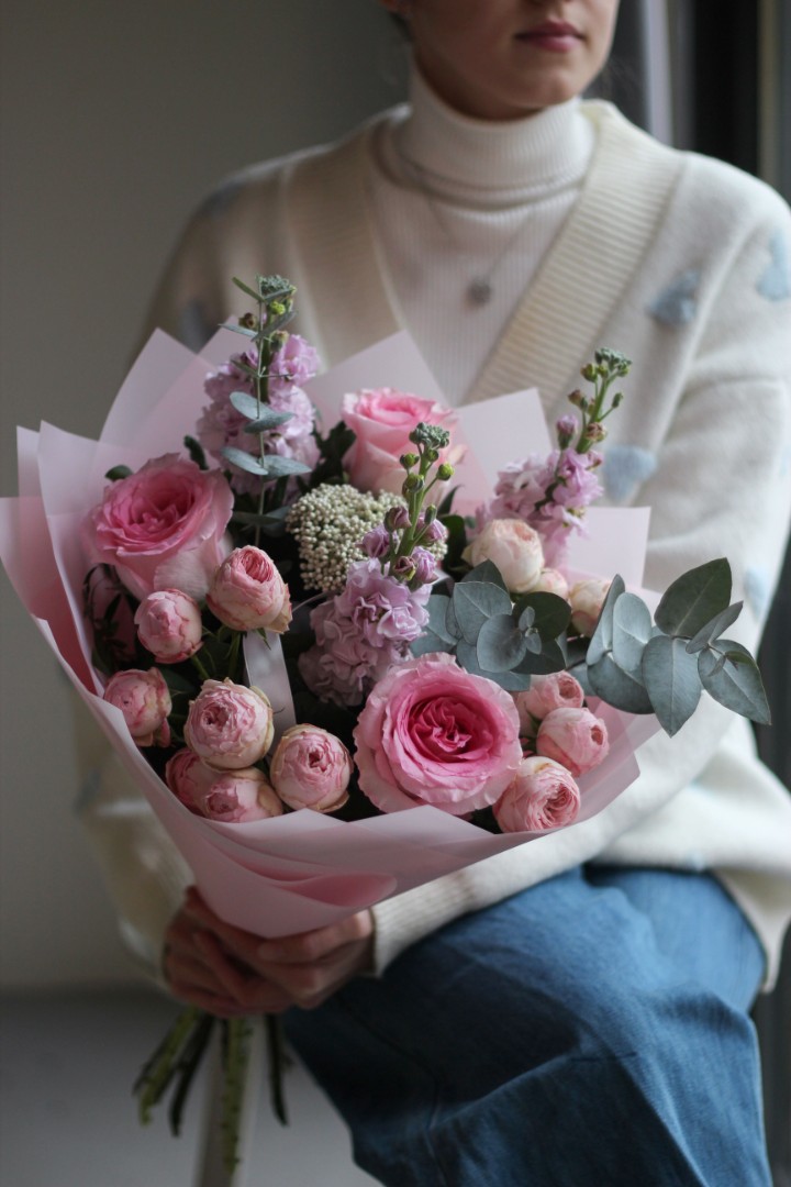 - - Роза кустовая пионовидных 4 шт. эвкалипт цинерия
