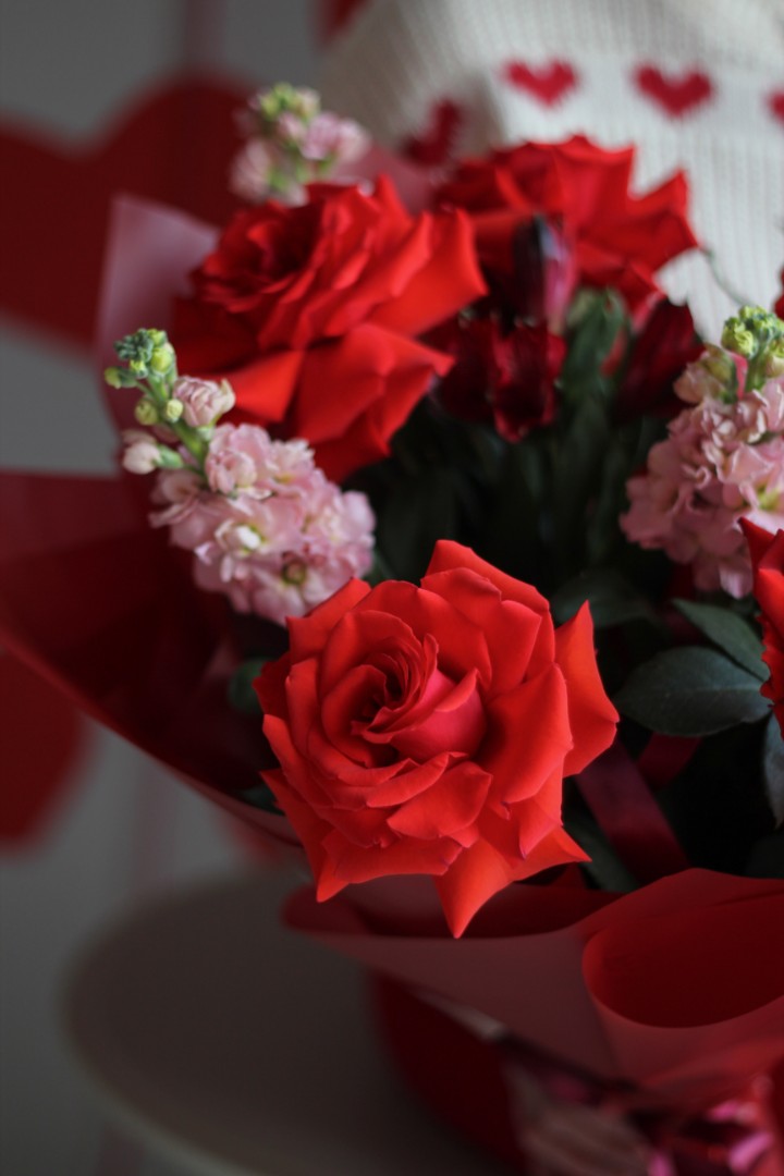 - - Французские розы,маттиола,илекс,альстромерия,гиперикум