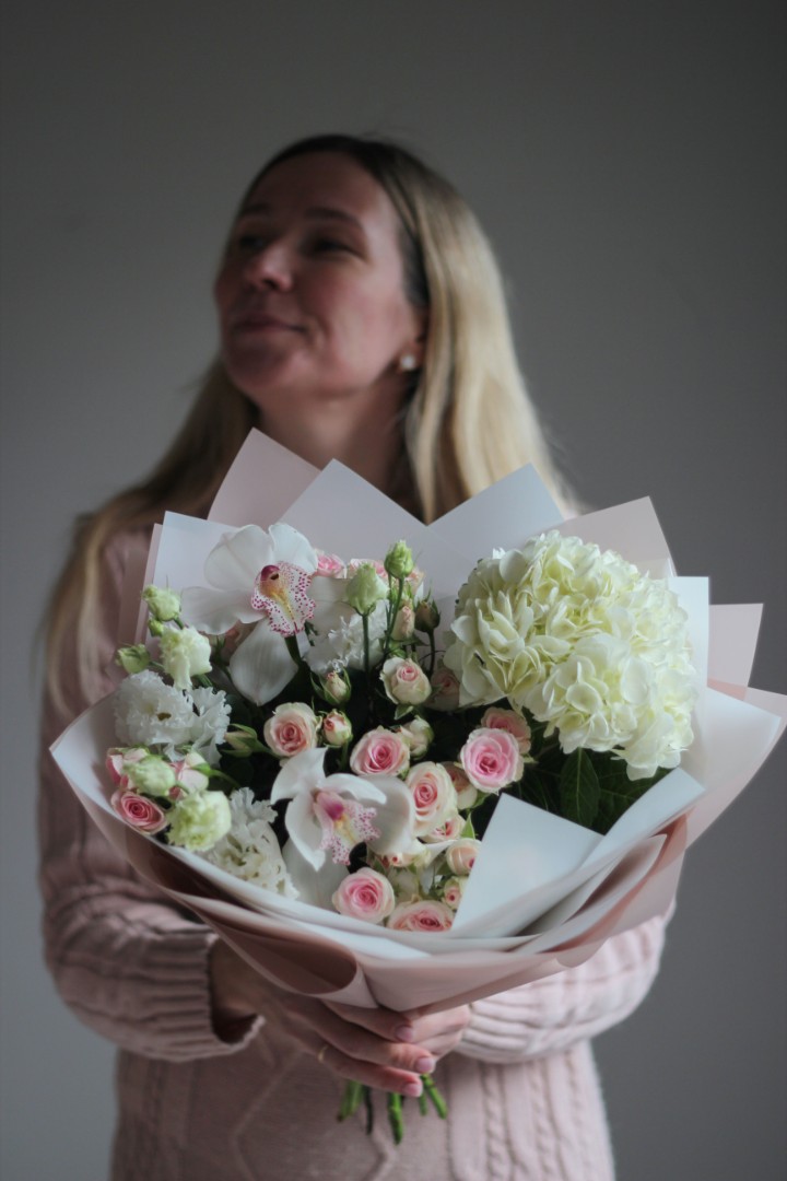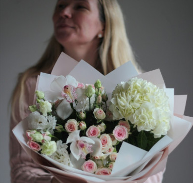 Букет с гортензией "Белый лебедь"