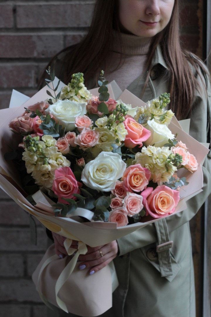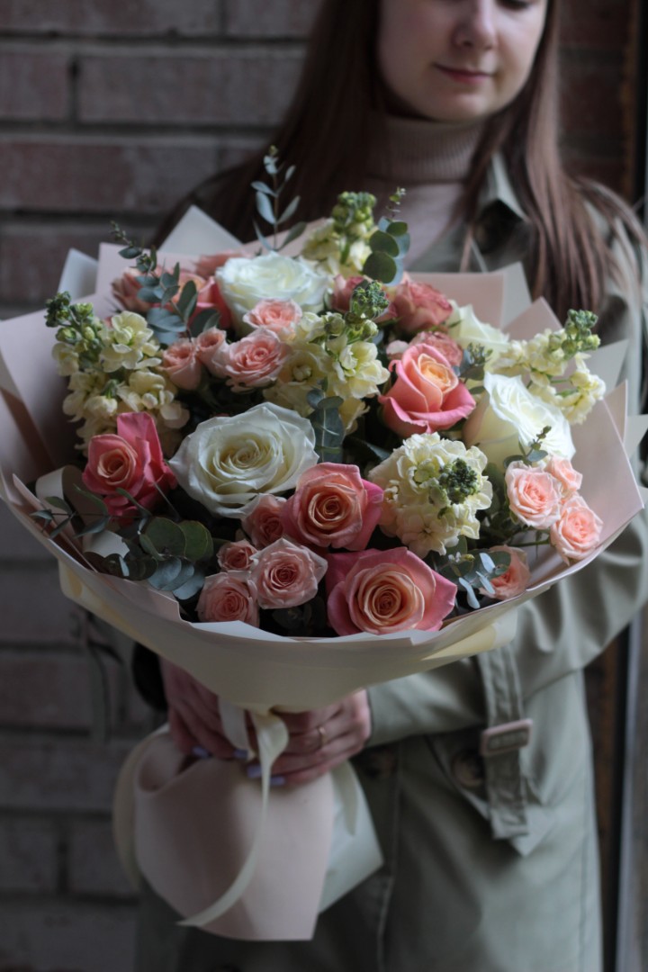- - Розы,кустовые розы,маттиола,эвкалипт