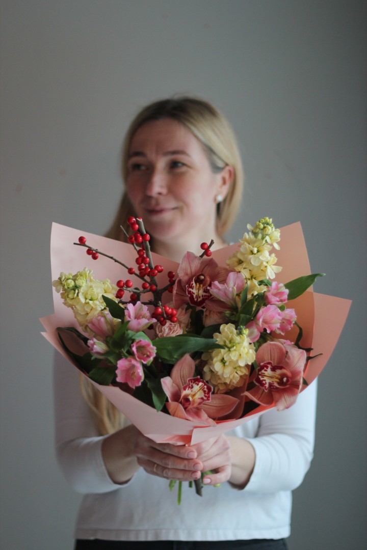 Букет с орхидеями "Праздничный торт"