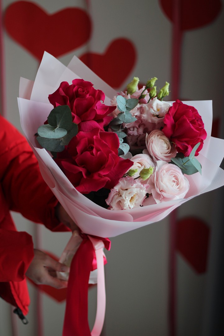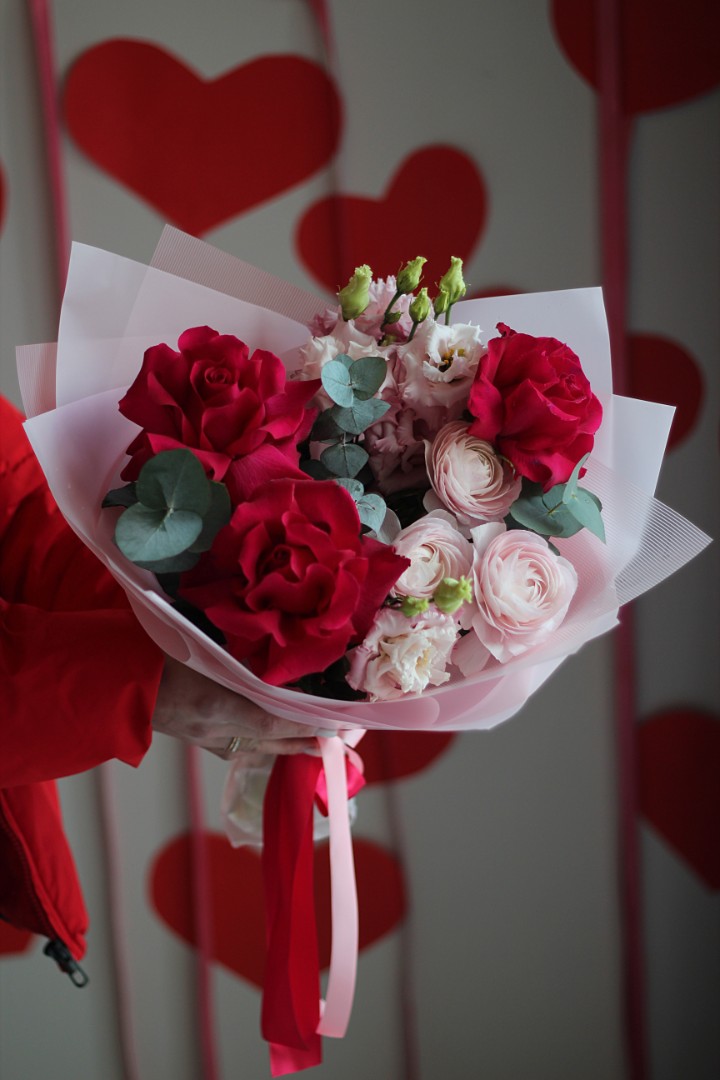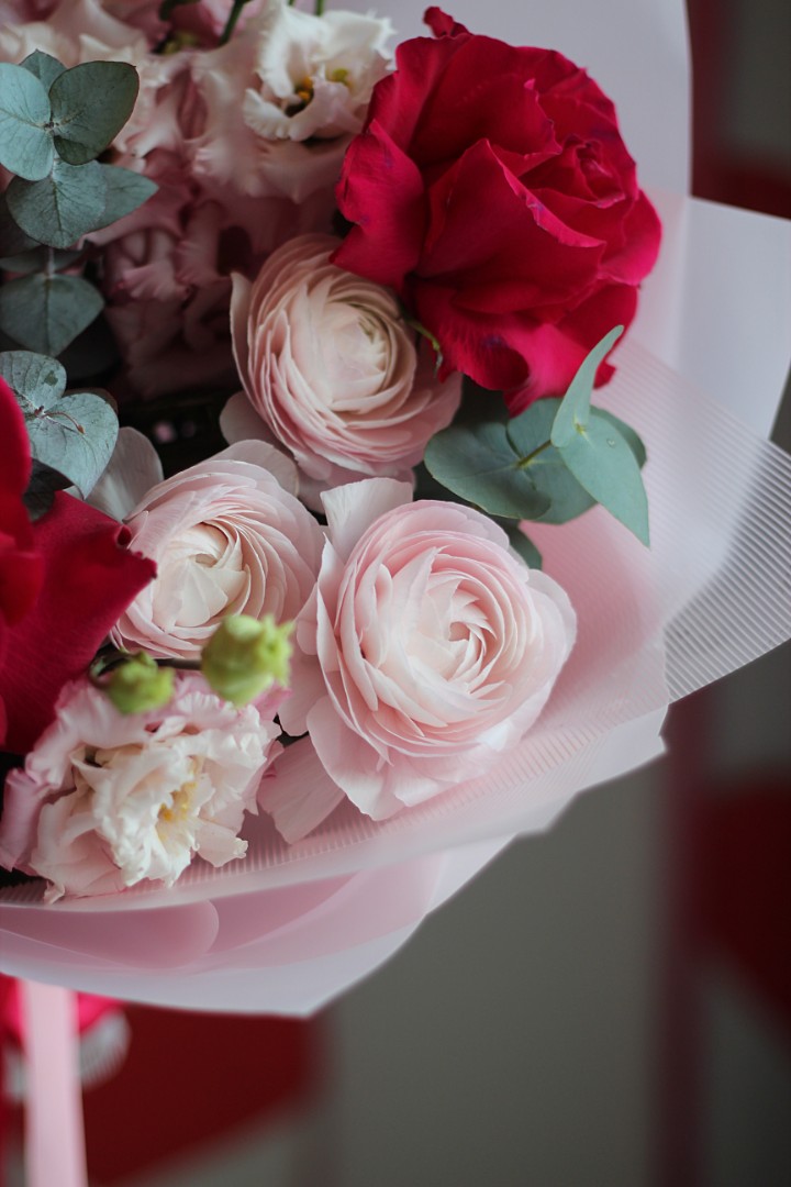 - - Ранункулюсы,эустома,эвкалипт,французские розы