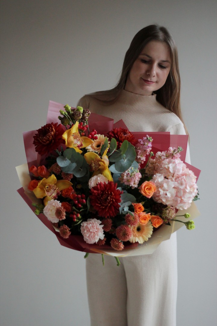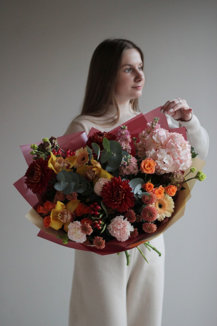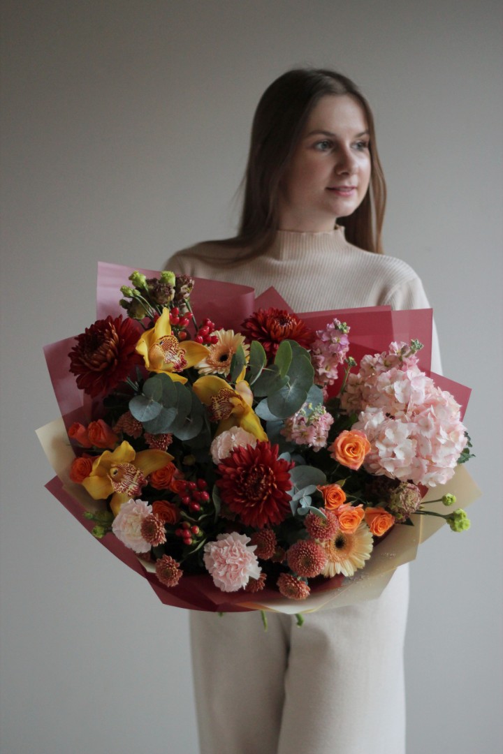 Букет с гортензией "Пламя"