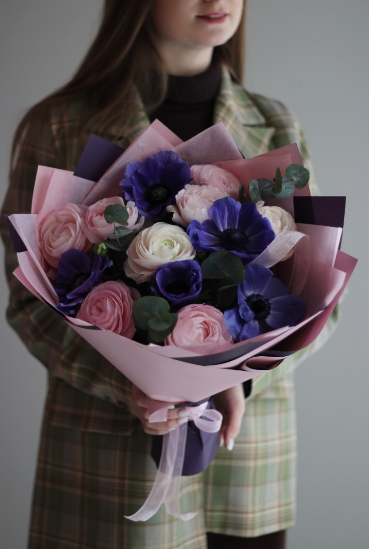 Букет из анемонов и ранункулюсов "Дуэт"
