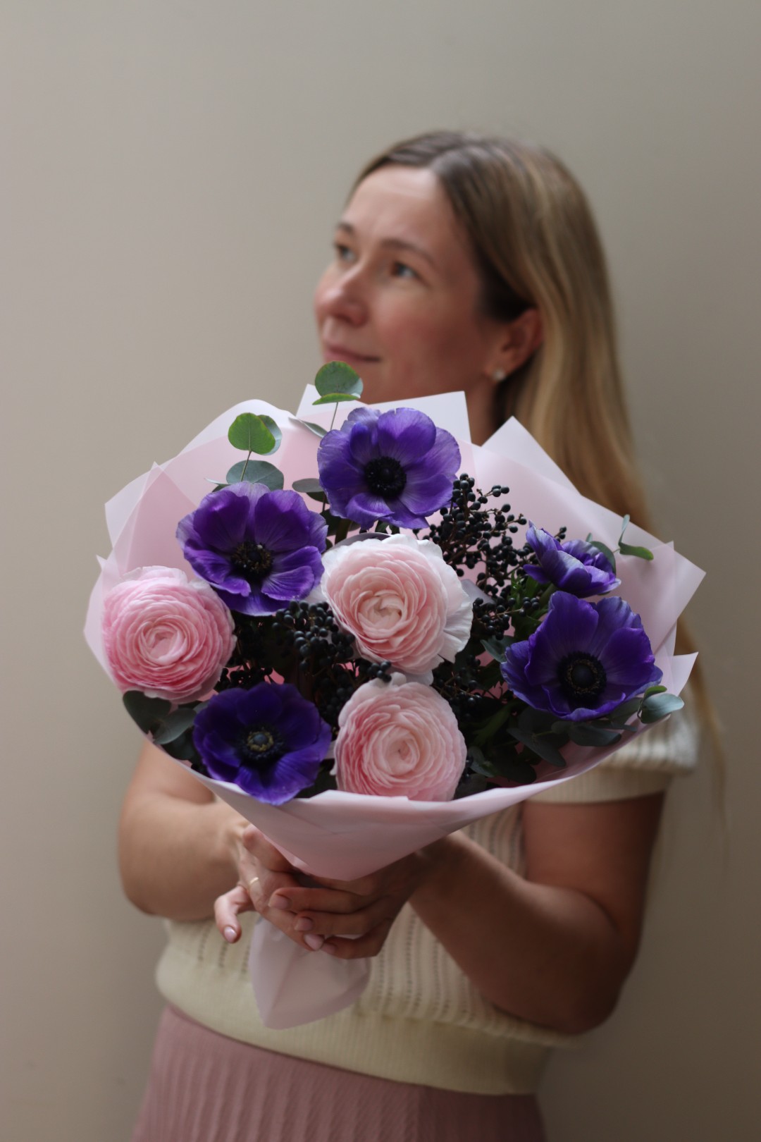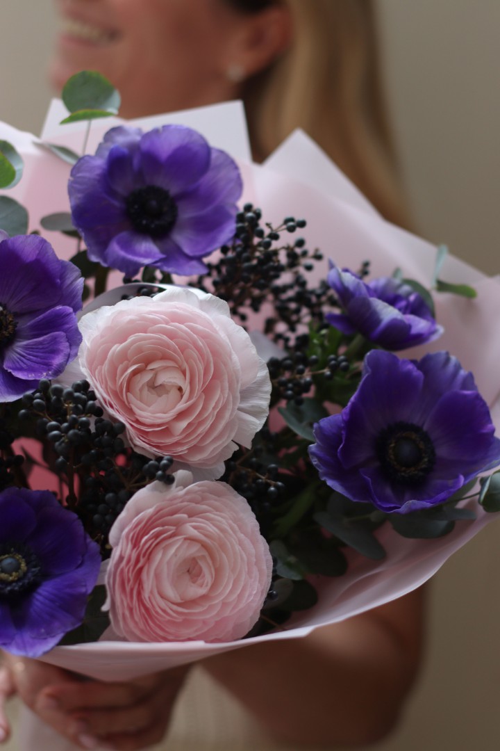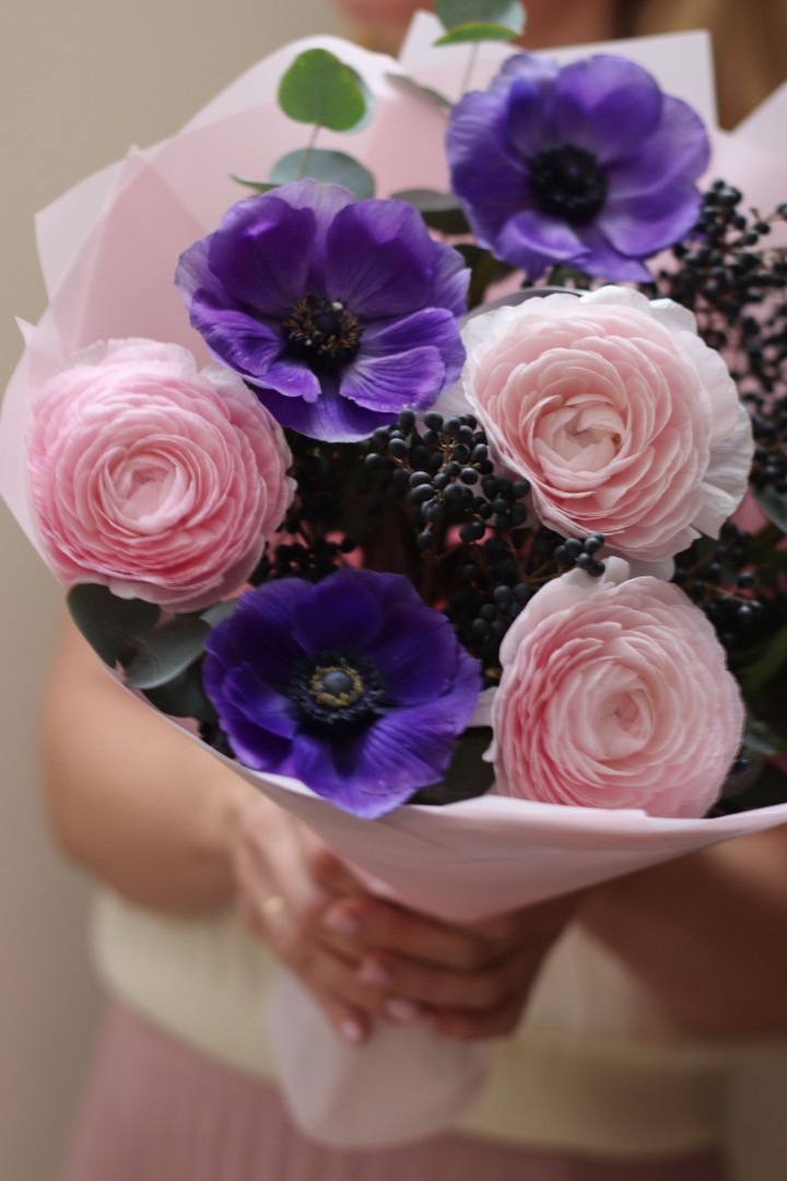 Букет с ранункулюсами и анемонами