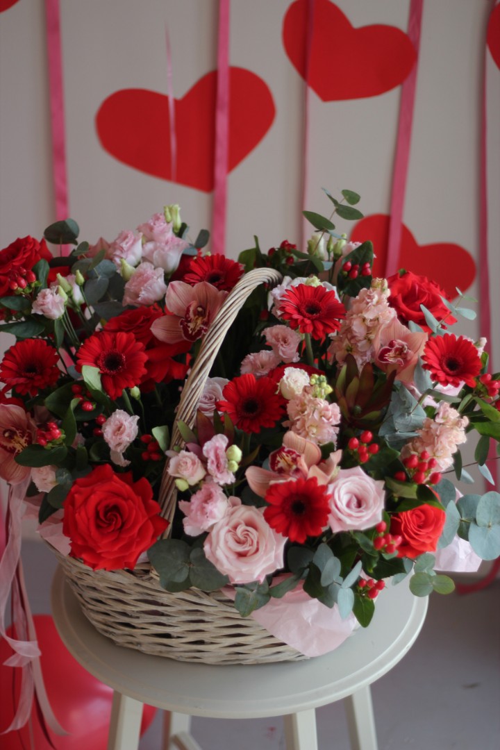 Цветочная корзина с орхидеями "Яркий поцелуй"