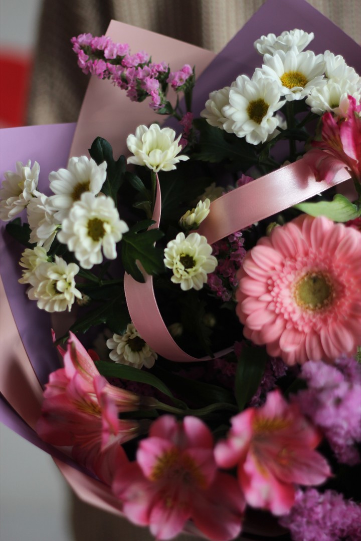 Упаковка: матовая пленка, атласная лента