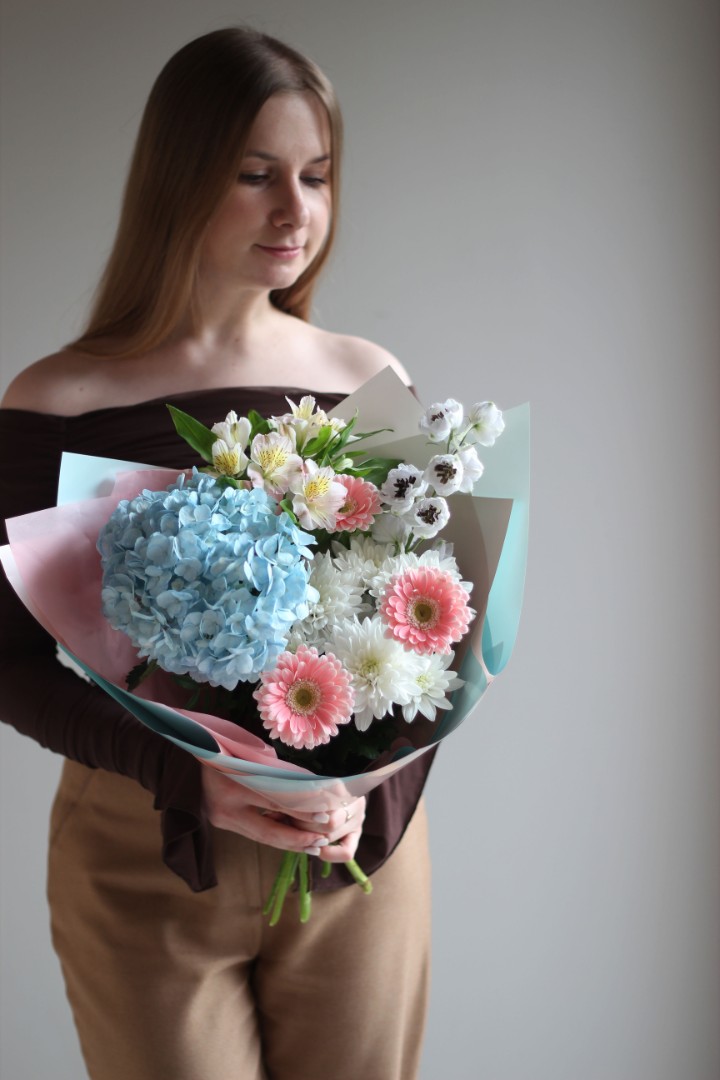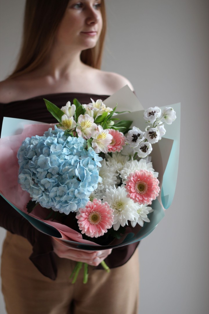 Букет с гортензией "Голубой океан"
