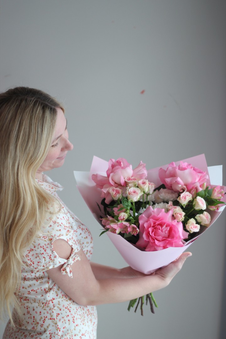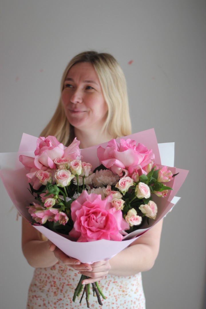 Упаковка: матовая пленка, атласная лента