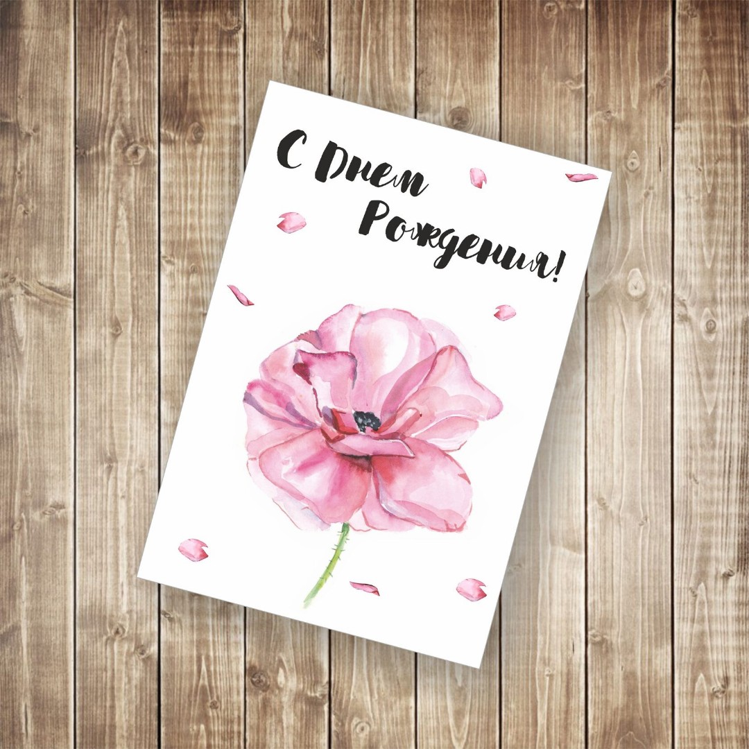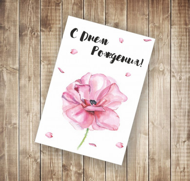 Открытка "С Днем рождения" анемон розовый