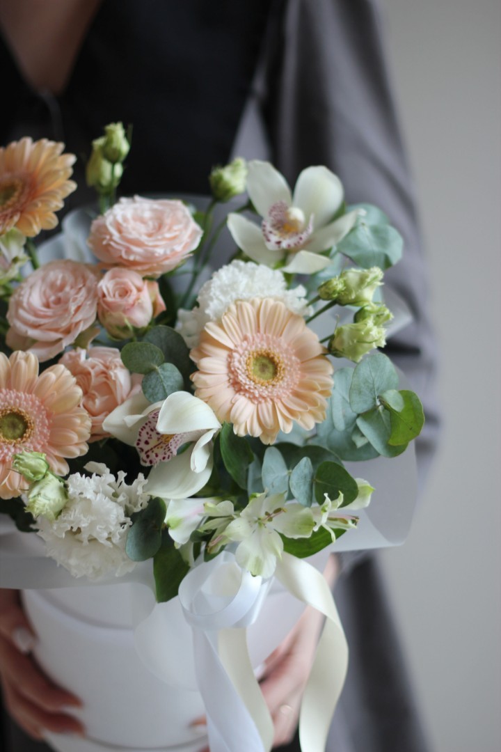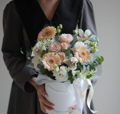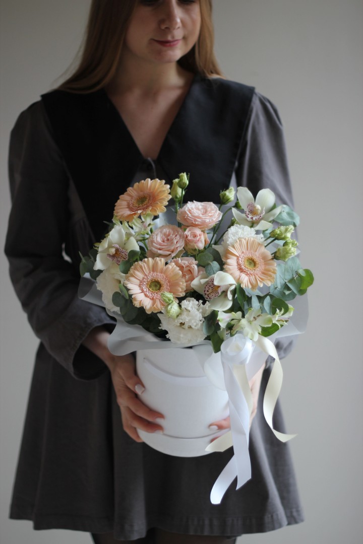 Шляпная коробка "Белый танец орхидей"