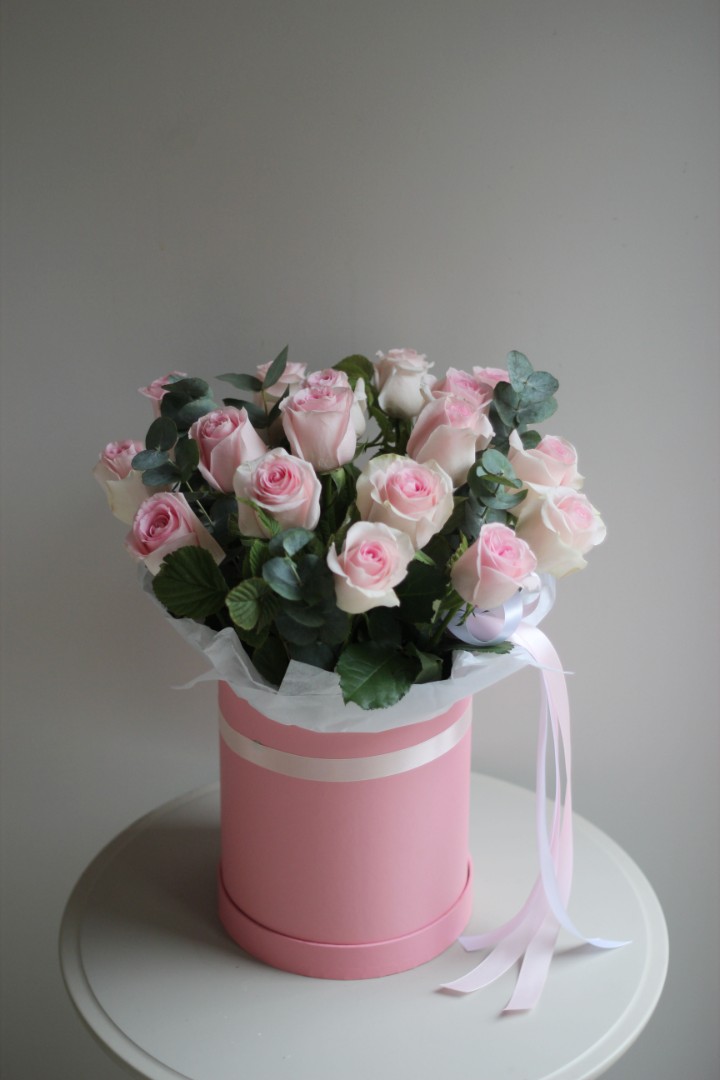 Шляпная коробка с гипсофилой "Крылышки ангелов"