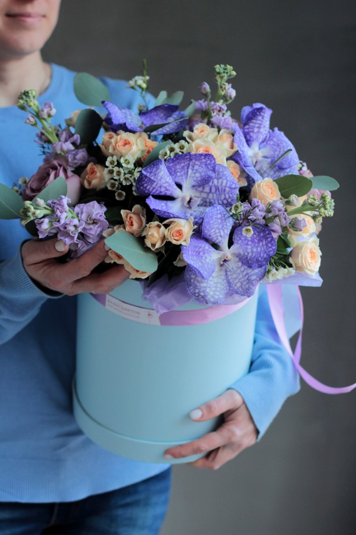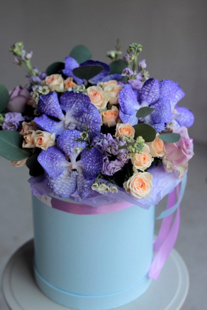 Шляпная коробка "Нежный аромат пионовидных роз"