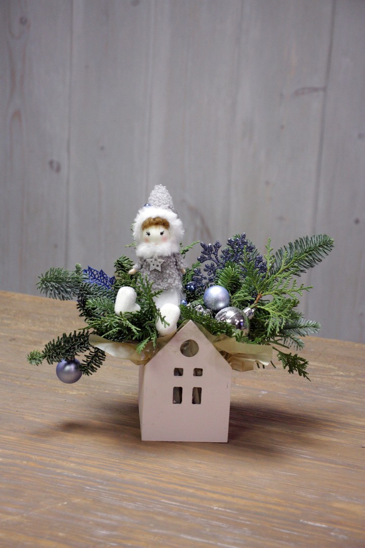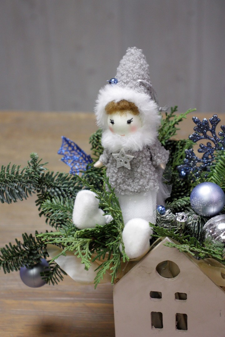 Новогодняя композиция "Девочка и домик"