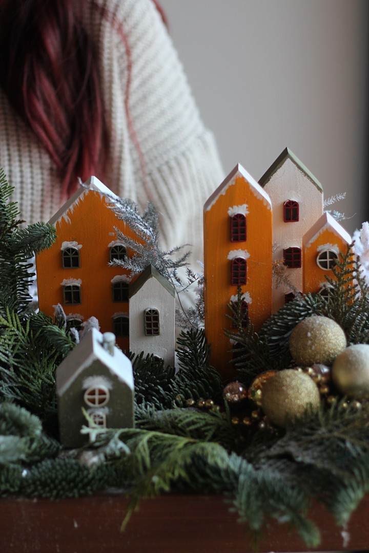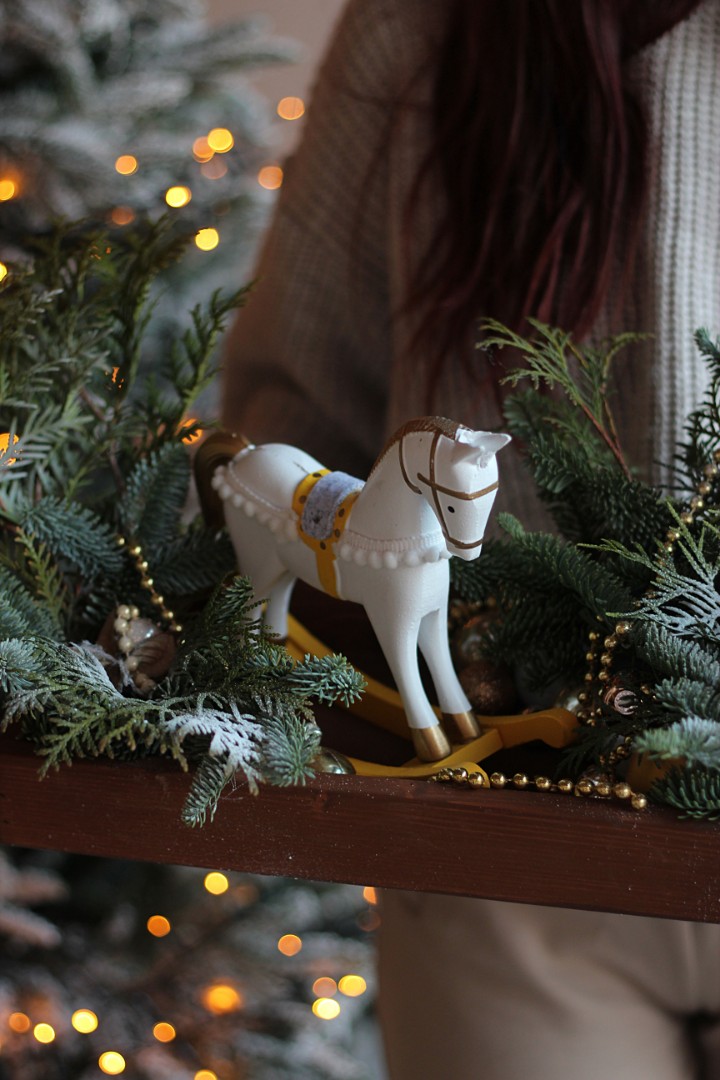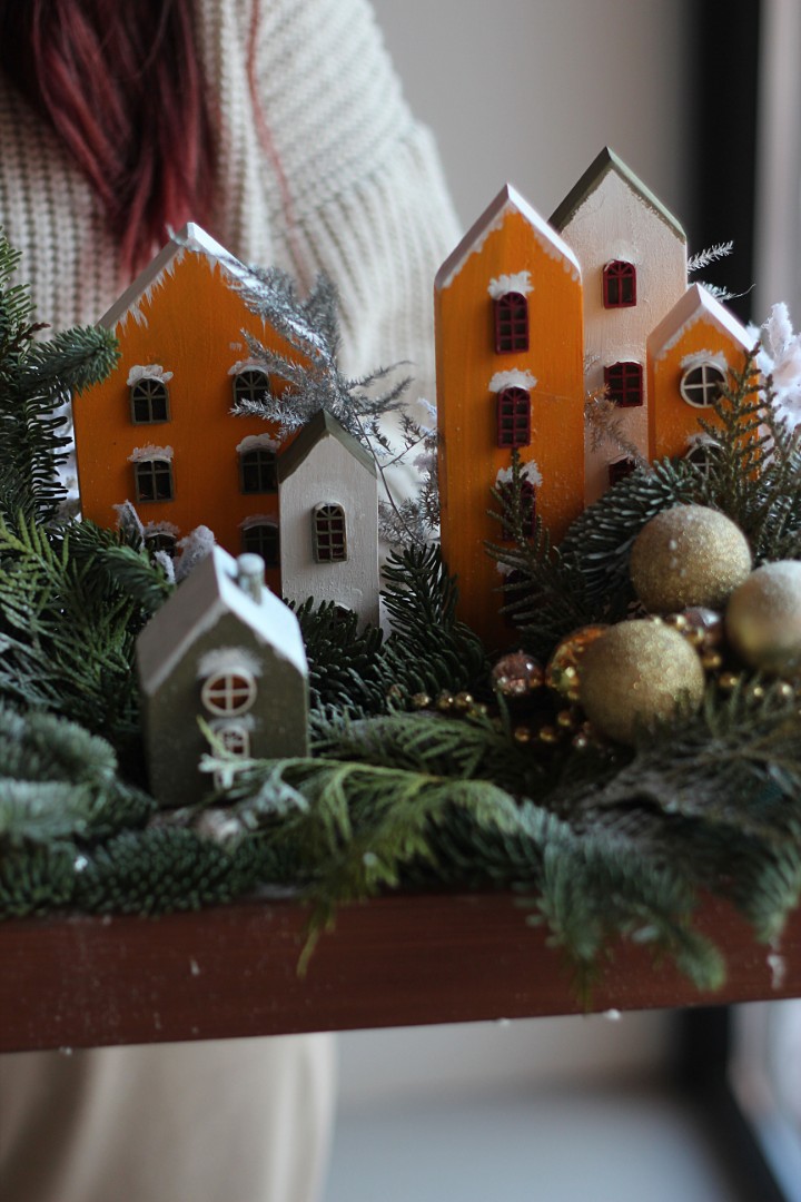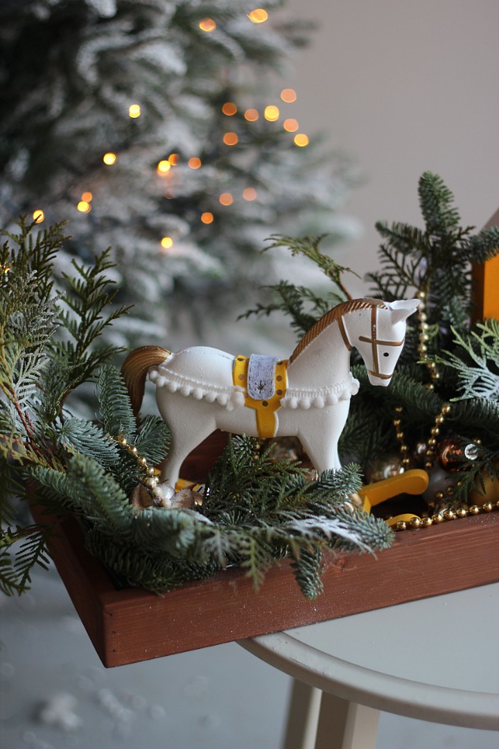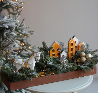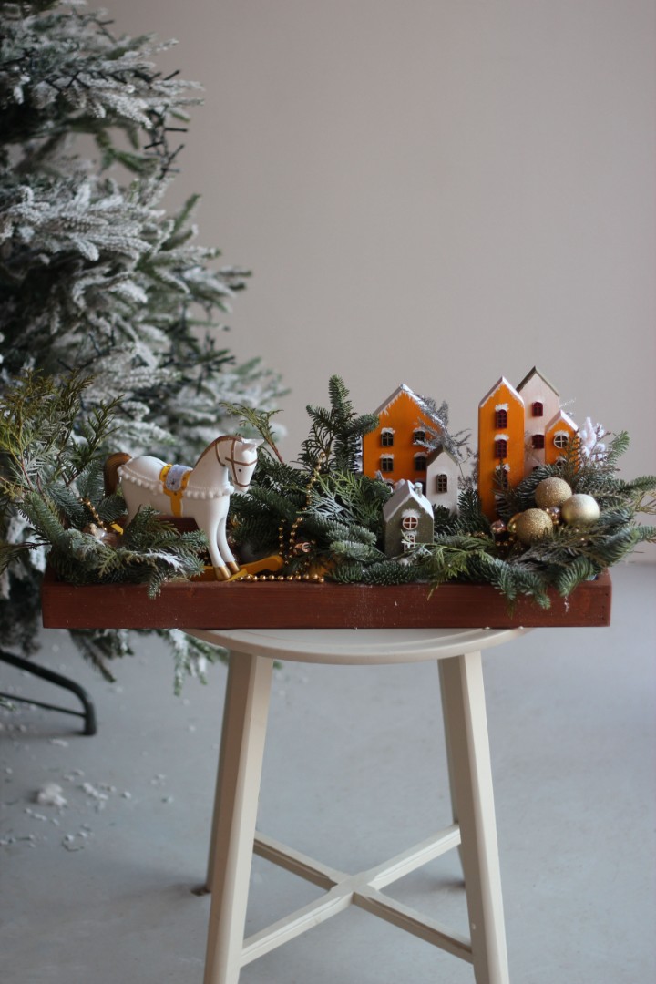 - - - деревянные домики - деревянная лошадка - ель нобилис - туя - новогодние шары